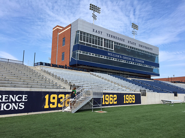 SiteScapes provided CityView cafe tables to ETSU Football stadium. These freestanding table sets are the perfect option for exterior seating spaces, including watching the big game. All table tops are solid stainless steel to prevent corrosion. Mounting options are surface mount, embed mount or free standing. Chairs are available in steel or aluminum. Contact SiteScapes today for pricing and other options.