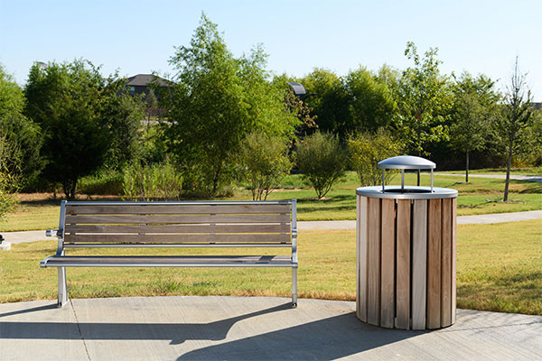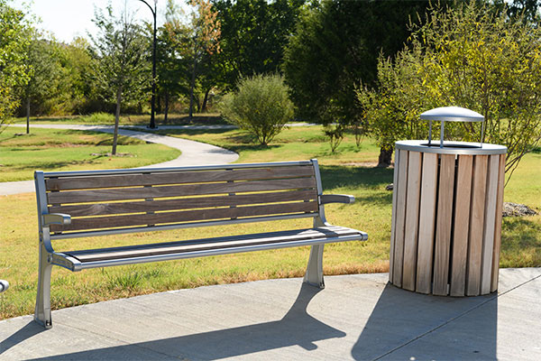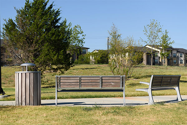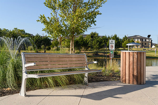 In 2017 the City of Princeton, TX embarked on a mission to develop a park and trail system aimed at community cohesiveness, retail, and mixed use expansion. The result of this effort is known as Crossroads Municipal Center and Park. The park is a 297 acre development stretching along Highway 380 and connecting retail and entertainment environments to the residents. Along this mile plus development, the city has placed dozens of Canopy park benches and Avondale trash receptacles. These products are the perfect combination of modern design and natural IPE wood components. These products coordinate with the environment while providing seating and trash solutions for all to enjoy.